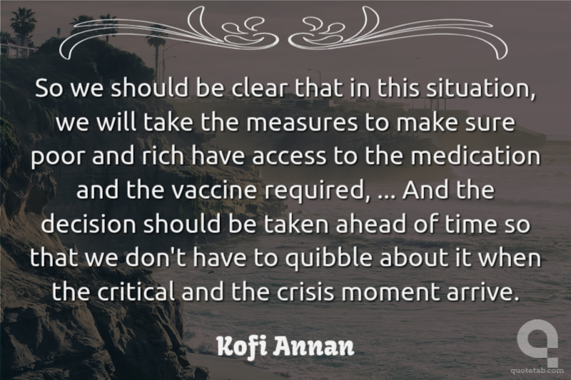 So we should be clear that in this situation, we will take the measures to make sure poor and rich have access to the medication and the vaccine required, ... And the decision should be taken ahead of time so that we don't have to quibble about it when the critical and the crisis moment arrive.