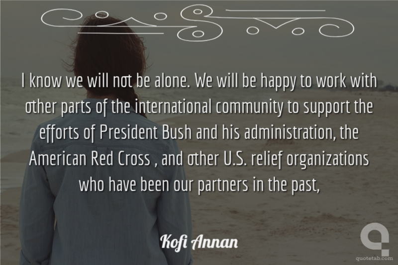 I know we will not be alone. We will be happy to work with other parts of the international community to support the efforts of President Bush and his administration, the American Red Cross , and other U.S. relief organizations who have been our partners in the past,