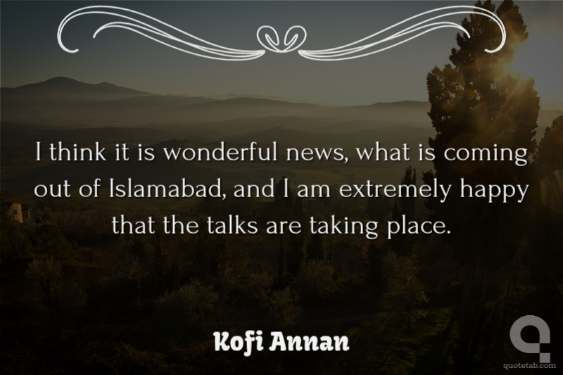 I think it is wonderful news, what is coming out of Islamabad, and I am extremely happy that the talks are taking place.