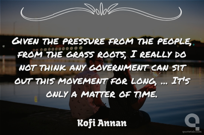 Given the pressure from the people, from the grass roots, I really do not think any government can sit out this movement for long, ... It's only a matter of time.