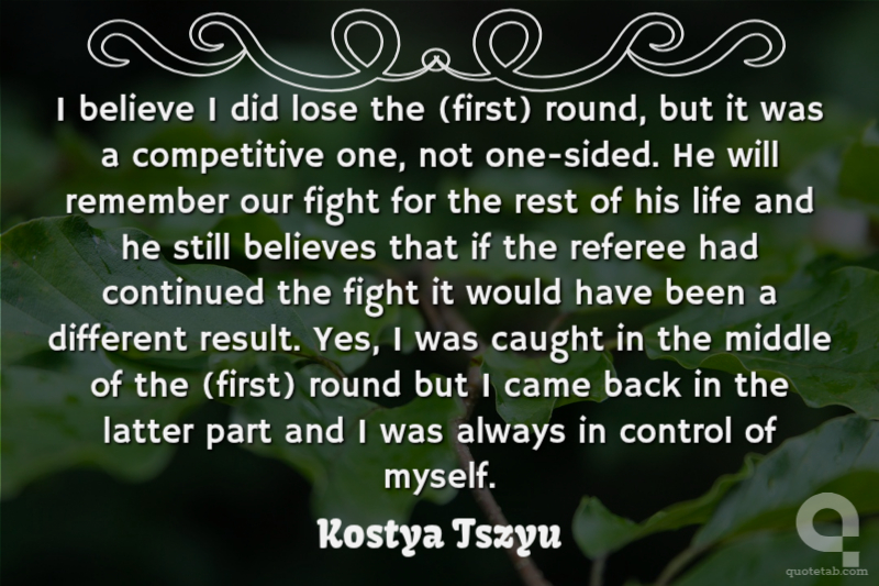 I believe I did lose the (first) round, but it was a competitive one, not one-sided. He will remember our fight for the rest of his life and he still believes that if the referee had continued the fight it would have been a different result. Yes, I was caught in the middle of the (first) round but I came back in the latter part and I was always in control of myself.