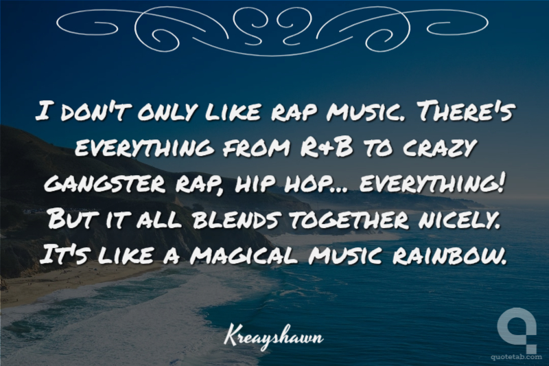 I don't only like rap music. There's everything from R&B to crazy gangster rap, hip hop... everything! But it all blends together nicely. It's like a magical music rainbow.