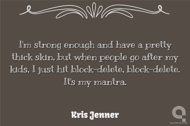 I'm strong enough and have a pretty thick skin, but when people go after my kids, I just hit block-delete, block-delete. It's my mantra.