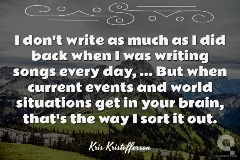 I don't write as much as I did back when I was writing songs every day, ... But when current events and world situations get in your brain, that's the way I sort it out.