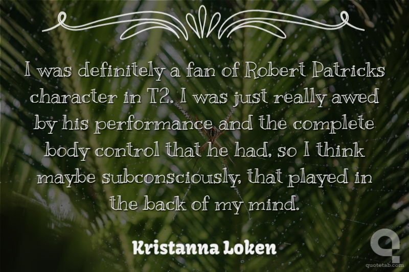 I was definitely a fan of Robert Patrick's character in T2. I was just really awed by his performance and the complete body control that he had, so I think maybe subconsciously, that played in the back of my mind.