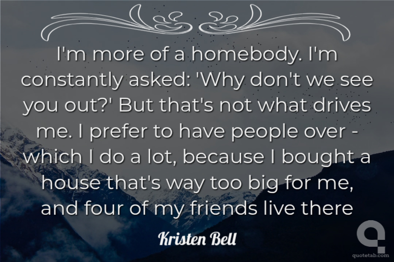 I'm more of a homebody. I'm constantly asked: 'Why don't we see you out?' But that's not what drives me. I prefer to have people over - which I do a lot, because I bought a house that's way too big for me, and four of my friends live there