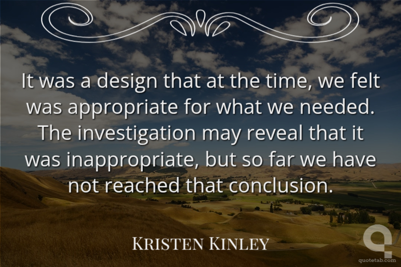 It was a design that at the time, we felt was appropriate for what we needed. The investigation may reveal that it was inappropriate, but so far we have not reached that conclusion.