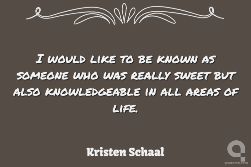 I would like to be known as someone who was really sweet but also knowledgeable in all areas of life.