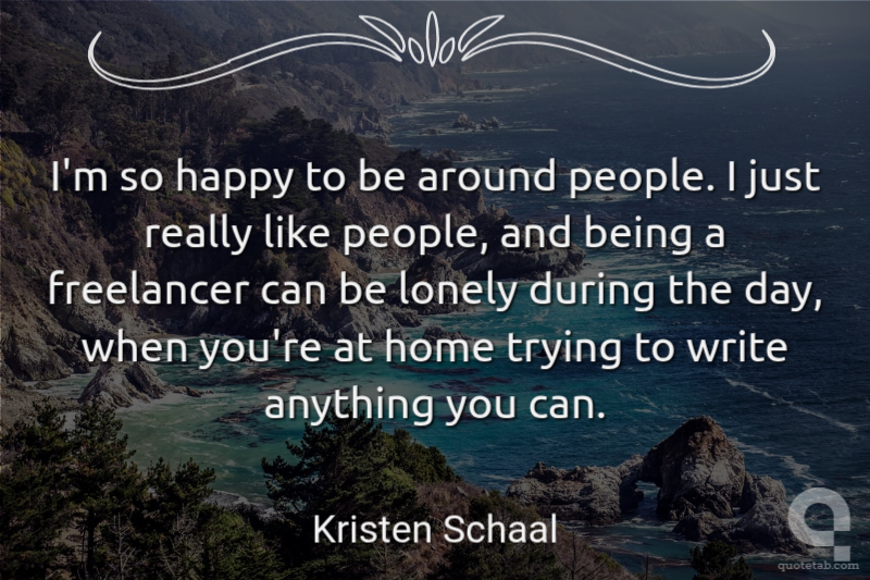 I'm so happy to be around people. I just really like people, and being a freelancer can be lonely during the day, when you're at home trying to write anything you can.