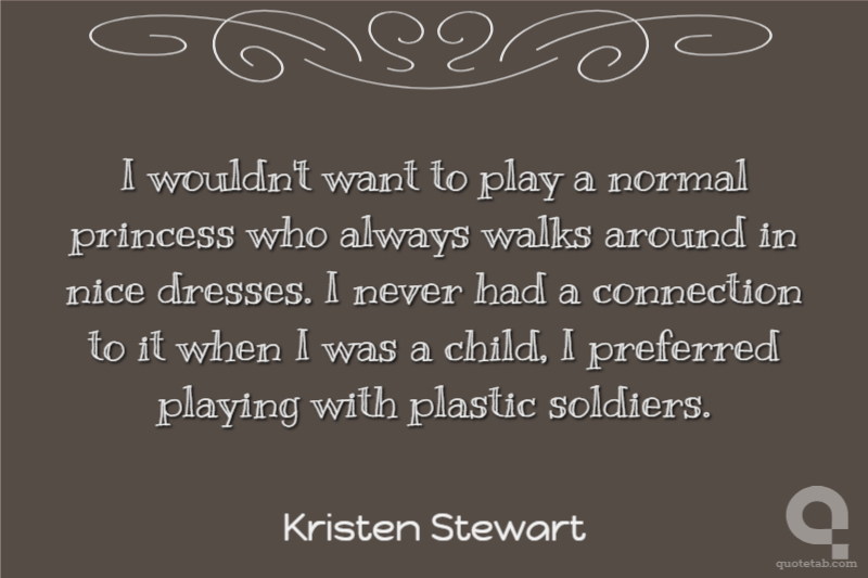 I wouldn't want to play a normal princess who always walks around in nice dresses. I never had a connection to it when I was a child, I preferred playing with plastic soldiers.