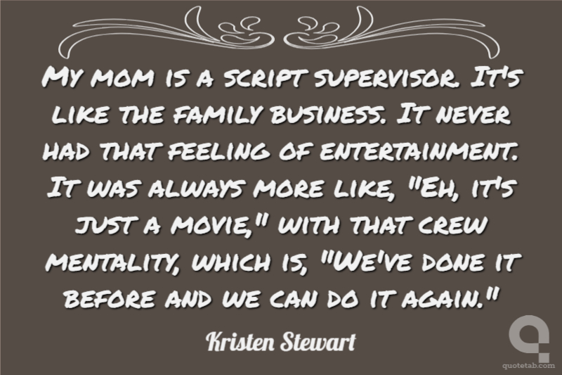 My mom is a script supervisor. It's like the family business. It never had that feeling of entertainment. It was always more like, "Eh, it's just a movie," with that crew mentality, which is, "We've done it before and we can do it again."