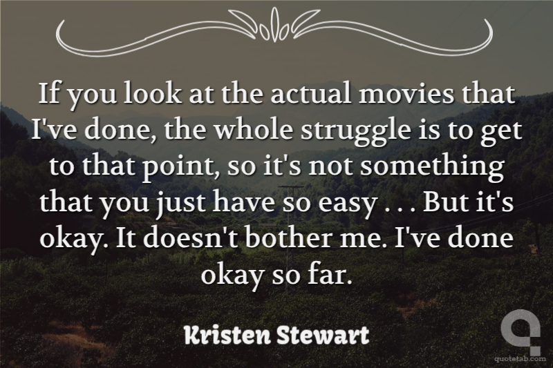 If you look at the actual movies that I've done, the whole struggle is to get to that point, so it's not something that you just have so easy . . . But it's okay. It doesn't bother me. I've done okay so far.