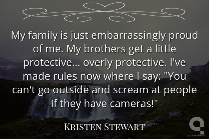 My family is just embarrassingly proud of me. My brothers get a little protective... overly protective. I've made rules now where I say: "You can't go outside and scream at people if they have cameras!"
