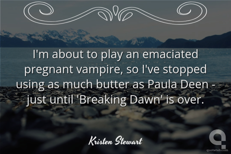 I'm about to play an emaciated pregnant vampire, so I've stopped using as much butter as Paula Deen - just until 'Breaking Dawn' is over.