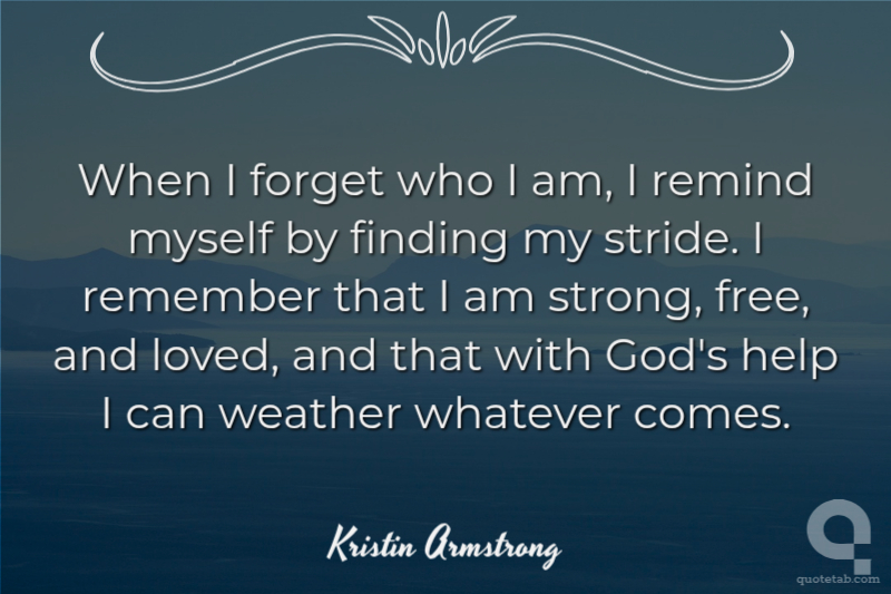 When I forget who I am, I remind myself by finding my stride. I remember that I am strong, free, and loved, and that with God's help I can weather whatever comes.