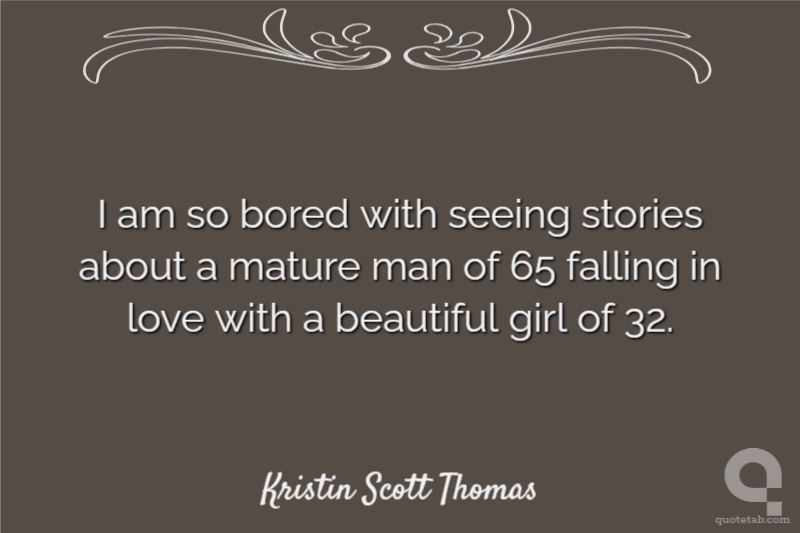 I am so bored with seeing stories about a mature man of 65 falling in love with a beautiful girl of 32.
