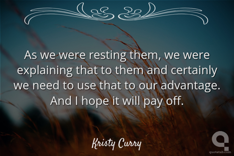As we were resting them, we were explaining that to them and certainly we need to use that to our advantage. And I hope it will pay off.