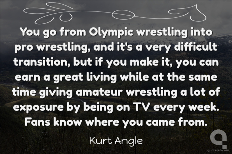 You go from Olympic wrestling into pro wrestling, and it's a very difficult transition, but if you make it, you can earn a great living while at the same time giving amateur wrestling a lot of exposure by being on TV every week. Fans know where you came from.