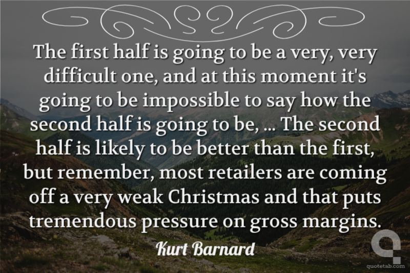 The first half is going to be a very, very difficult one, and at this moment it's going to be impossible to say how the second half is going to be, ... The second half is likely to be better than the first, but remember, most retailers are coming off a very weak Christmas and that puts tremendous pressure on gross margins.