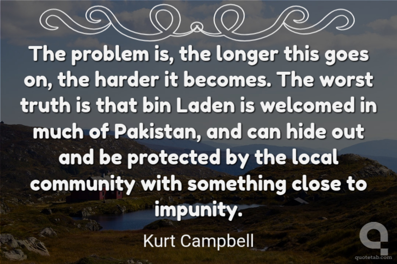 The problem is, the longer this goes on, the harder it becomes. The worst truth is that bin Laden is welcomed in much of Pakistan, and can hide out and be protected by the local community with something close to impunity.