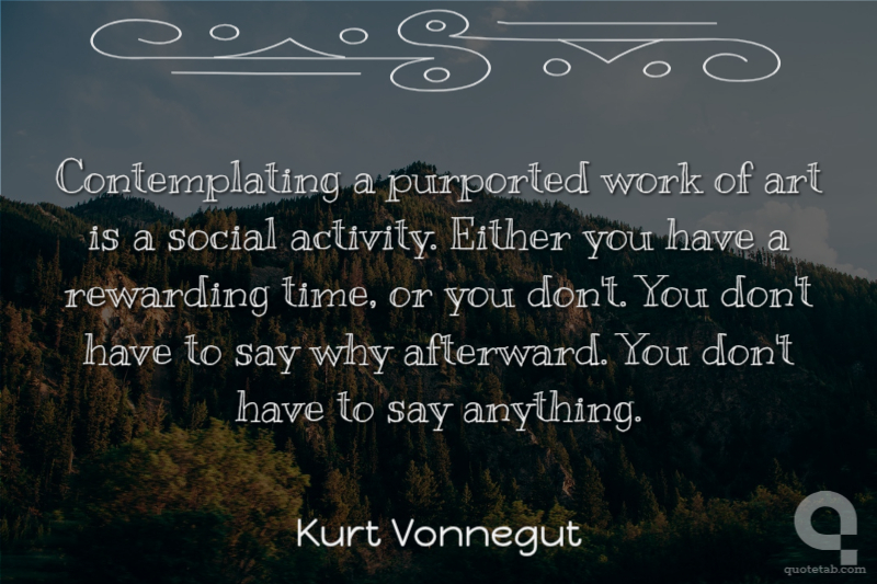 Contemplating a purported work of art is a social activity. Either you have a rewarding time, or you don't. You don't have to say why afterward. You don't have to say anything.