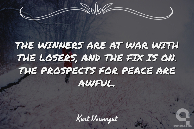 THE WINNERS ARE AT WAR WITH THE LOSERS, AND THE FIX IS ON. THE PROSPECTS FOR PEACE ARE AWFUL.