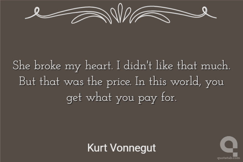 She broke my heart. I didn't like that much. But that was the price. In this world, you get what you pay for.
