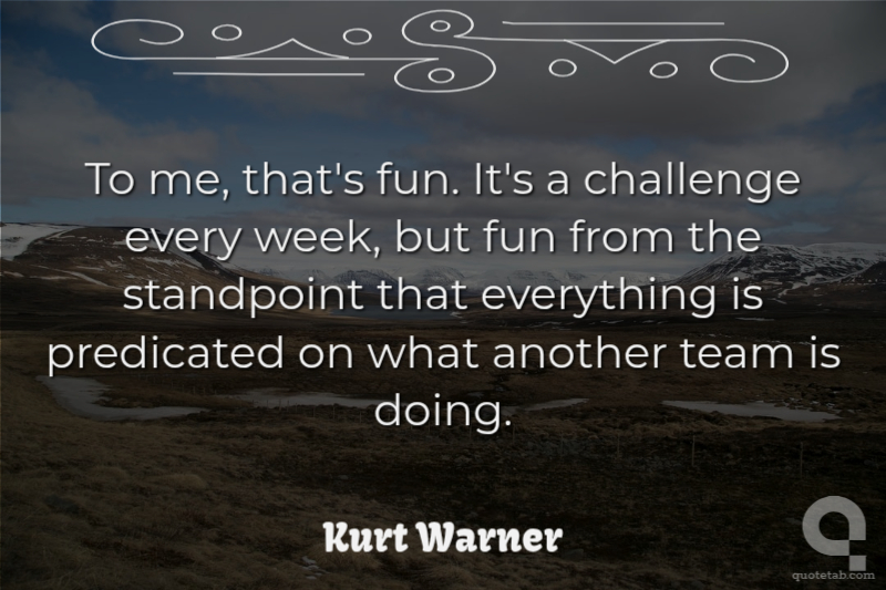 To me, that's fun. It's a challenge every week, but fun from the standpoint that everything is predicated on what another team is doing.