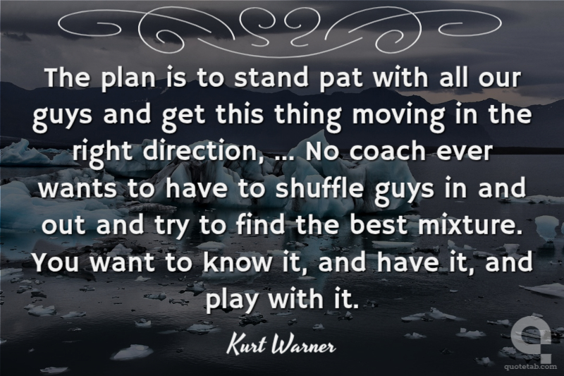 The plan is to stand pat with all our guys and get this thing moving in the right direction, ... No coach ever wants to have to shuffle guys in and out and try to find the best mixture. You want to know it, and have it, and play with it.