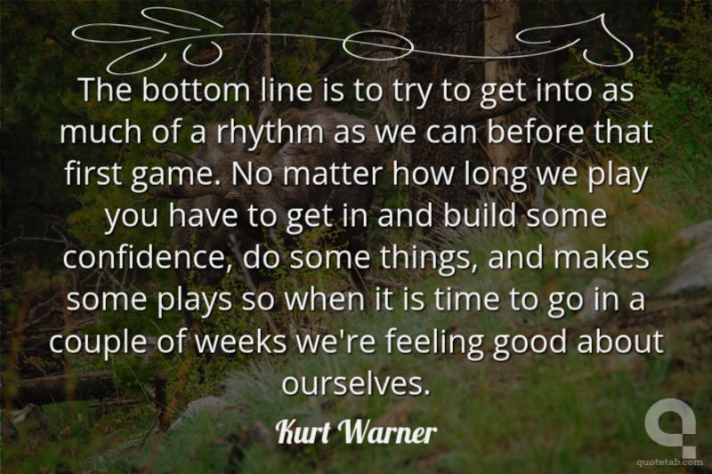 The bottom line is to try to get into as much of a rhythm as we can before that first game. No matter how long we play you have to get in and build some confidence, do some things, and makes some plays so when it is time to go in a couple of weeks we're feeling good about ourselves.