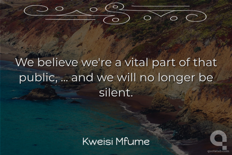 We believe we're a vital part of that public, ... and we will no longer be silent.