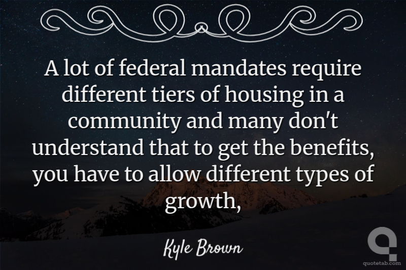 A lot of federal mandates require different tiers of housing in a community and many don't understand that to get the benefits, you have to allow different types of growth,