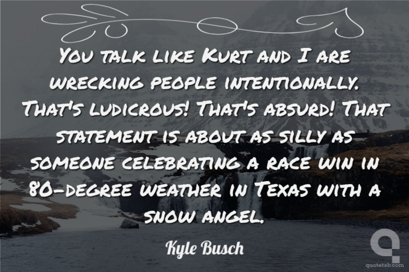 You talk like Kurt and I are wrecking people intentionally. That's ludicrous! That's absurd! That statement is about as silly as someone celebrating a race win in 80-degree weather in Texas with a snow angel.