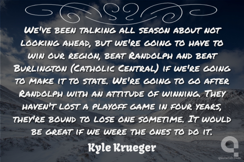 We've been talking all season about not looking ahead, but we're going to have to win our region, beat Randolph and beat Burlington (Catholic Central) if we're going to make it to state. We're going to go after Randolph with an attitude of winning. They haven't lost a playoff game in four years, they're bound to lose one sometime. It would be great if we were the ones to do it.