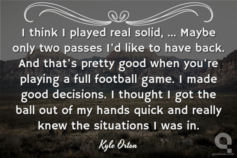 I think I played real solid, ... Maybe only two passes I'd like to have back. And that's pretty good when you're playing a full football game. I made good decisions. I thought I got the ball out of my hands quick and really knew the situations I was in.