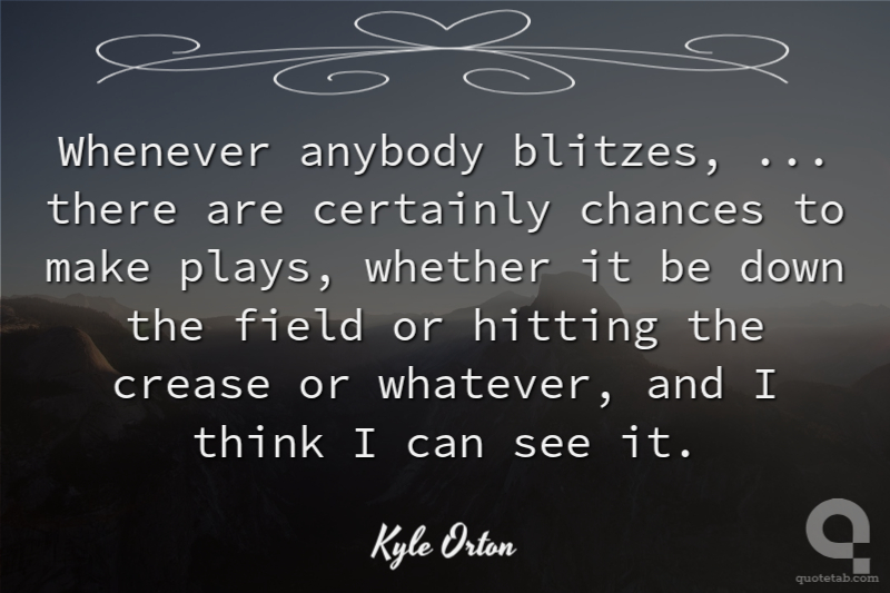 Whenever anybody blitzes, ... there are certainly chances to make plays, whether it be down the field or hitting the crease or whatever, and I think I can see it.