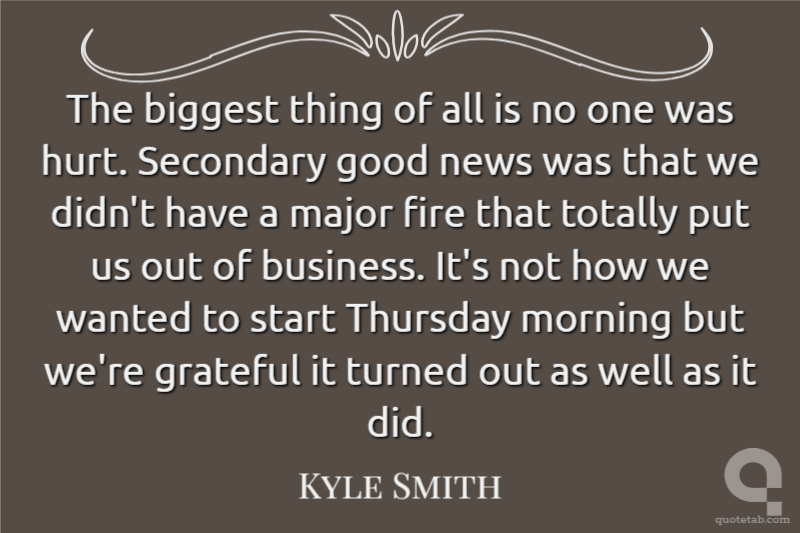 The biggest thing of all is no one was hurt. Secondary good news was that we didn't have a major fire that totally put us out of business. It's not how we wanted to start Thursday morning but we're grateful it turned out as well as it did.
