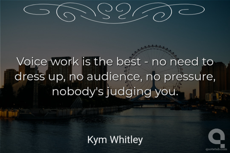 Voice work is the best - no need to dress up, no audience, no pressure, nobody's judging you.