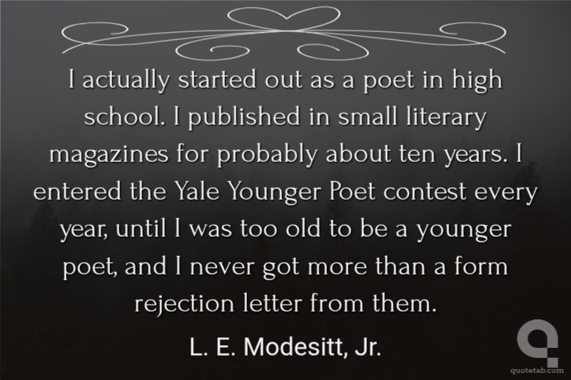 I actually started out as a poet in high school. I published in small literary magazines for probably about ten years. I entered the Yale Younger Poet contest every year, until I was too old to be a younger poet, and I never got more than a form rejection letter from them.