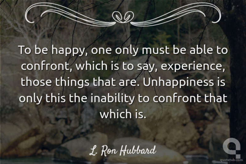 To be happy, one only must be able to confront, which is to say, experience, those things that are. Unhappiness is only this the inability to confront that which is.