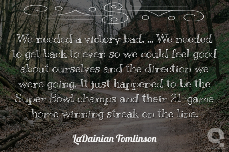 We needed a victory bad, ... We needed to get back to even so we could feel good about ourselves and the direction we were going. It just happened to be the Super Bowl champs and their 21-game home winning streak on the line.