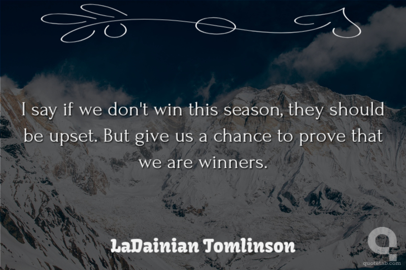 I say if we don't win this season, they should be upset. But give us a chance to prove that we are winners.