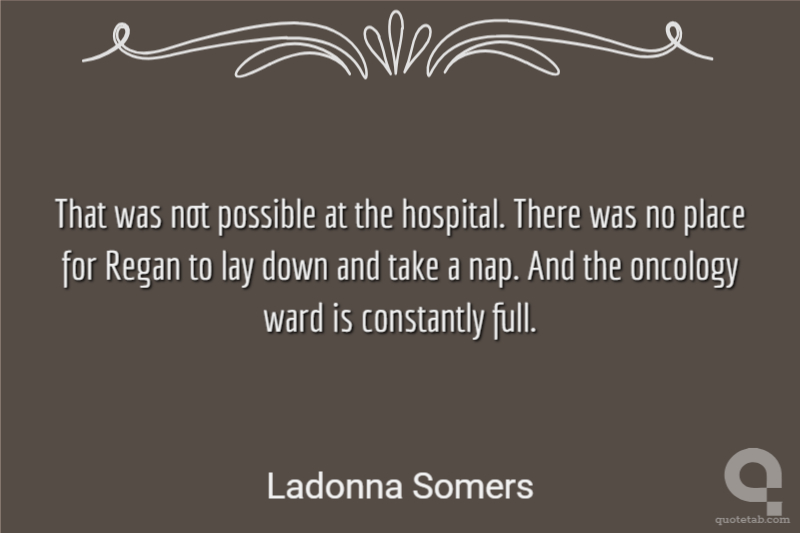 That was not possible at the hospital. There was no place for Regan to lay down and take a nap. And the oncology ward is constantly full.