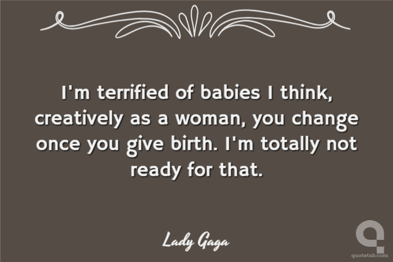 I'm terrified of babies I think, creatively as a woman, you change once you give birth. I'm totally not ready for that.