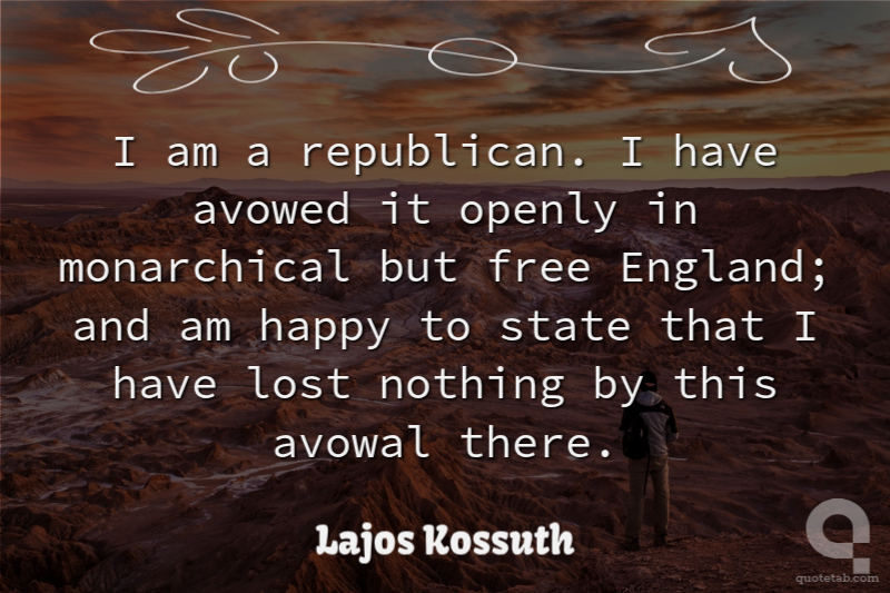 I am a republican. I have avowed it openly in monarchical but free England; and am happy to state that I have lost nothing by this avowal there.