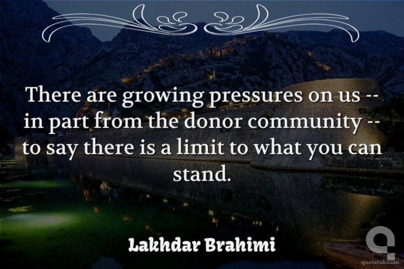 There are growing pressures on us -- in part from the donor community -- to say there is a limit to what you can stand.