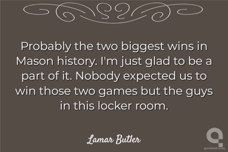 Probably the two biggest wins in Mason history. I'm just glad to be a part of it. Nobody expected us to win those two games but the guys in this locker room.
