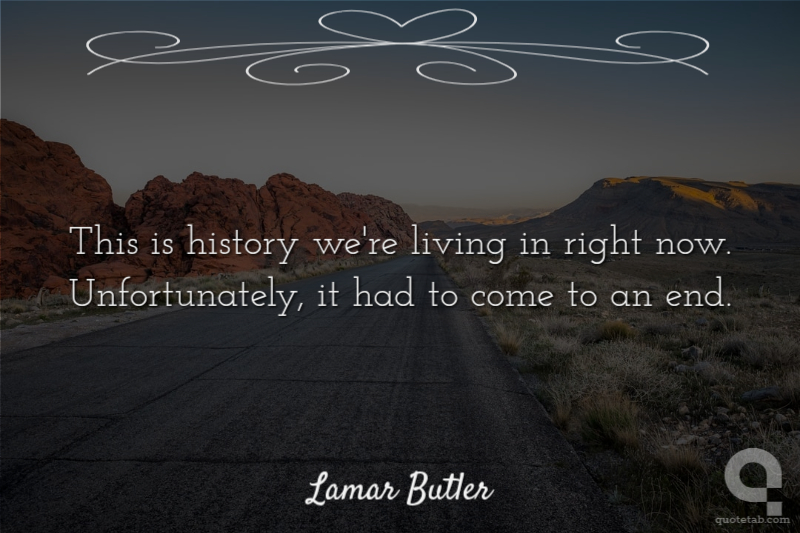 This is history we're living in right now. Unfortunately, it had to come to an end.