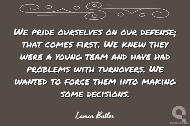 We pride ourselves on our defense; that comes first. We knew they were a young team and have had problems with turnovers. We wanted to force them into making some decisions.