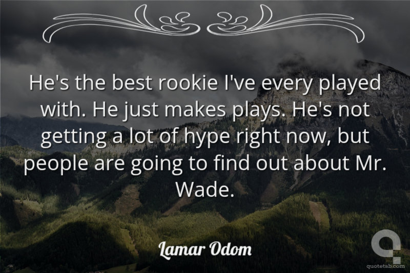 He's the best rookie I've every played with. He just makes plays. He's not getting a lot of hype right now, but people are going to find out about Mr. Wade.